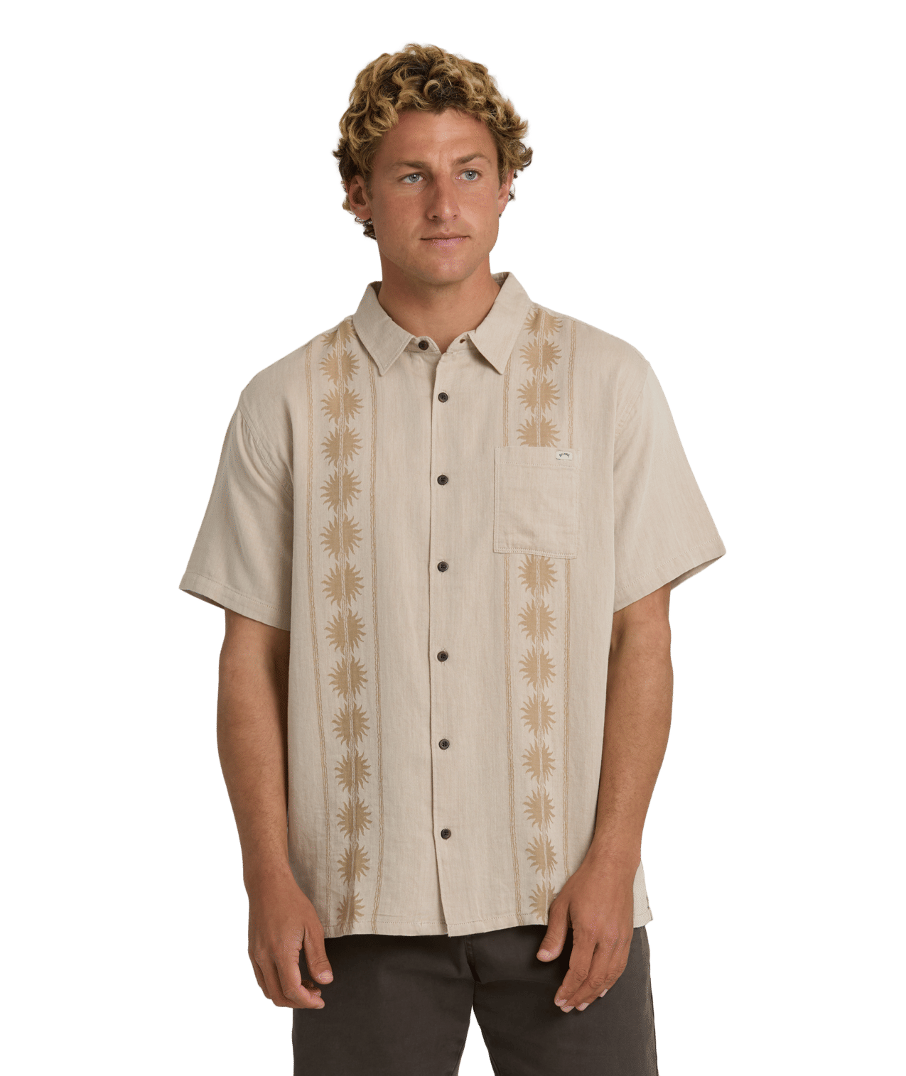 Het Billabong Cordoba Woven Top Desert Khaki is een stijlvol herenoverhemd, vervaardigd uit 100% katoen geweven stof voor een comfortabele en ademende pasvorm. Het shirt heeft korte mouwen, een knopenlijst voorop en een praktische borstritszak, waardoor het zowel functioneel als modieus is voor casual streetwear en dagelijkse outfits.