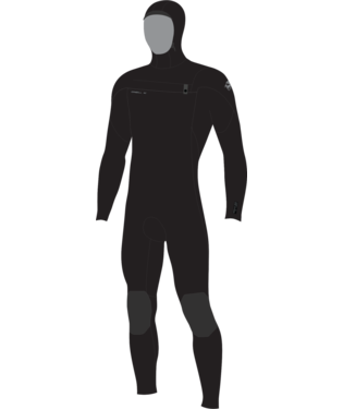 Epic 6/4 Wetsuit Chest Zip Hooded Black/Black/Black