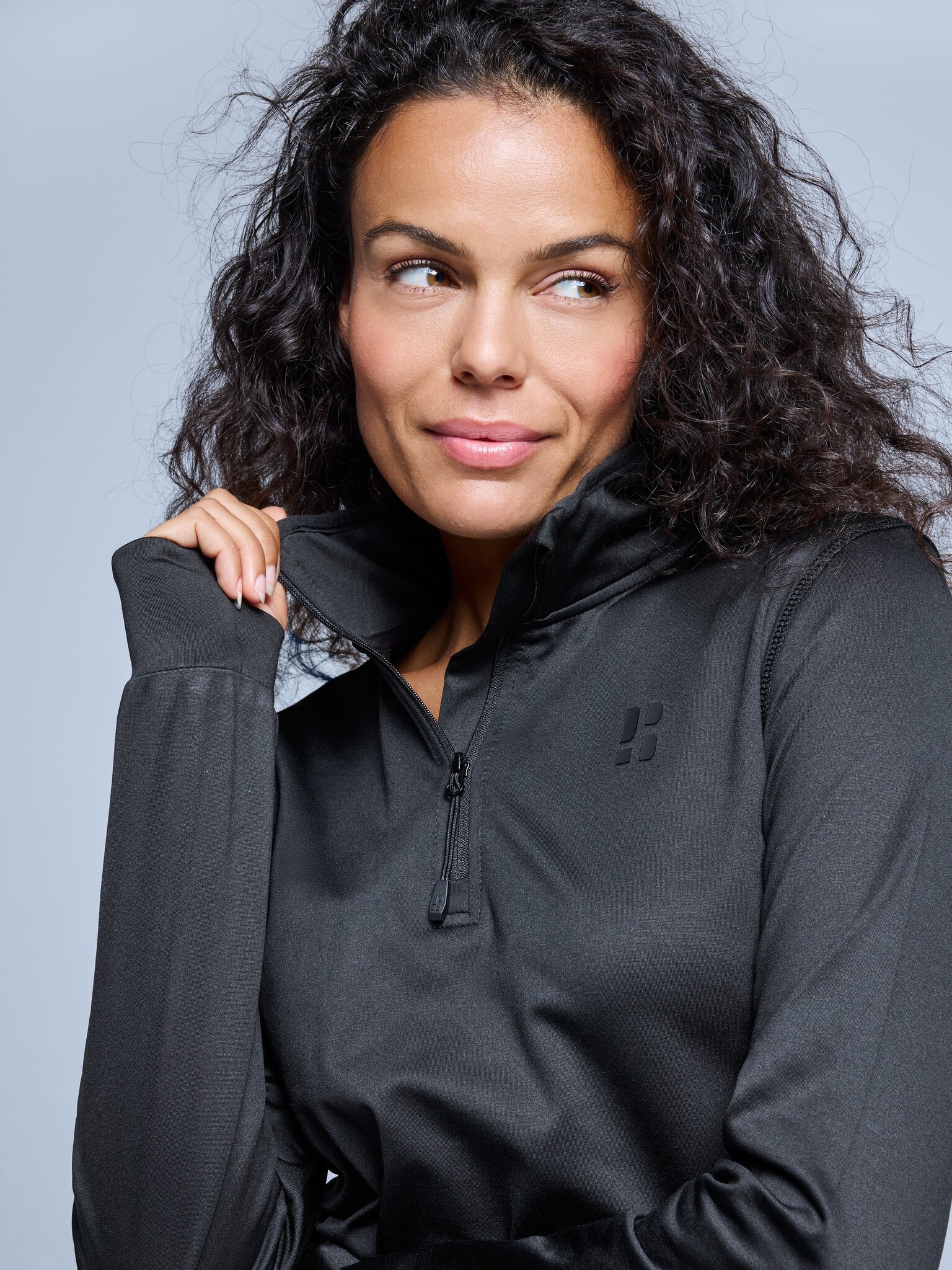 • Half‑rits met kinbescherming zorgt voor extra warmte rond de hals en maakt aan‑ en uitdoen eenvoudig
