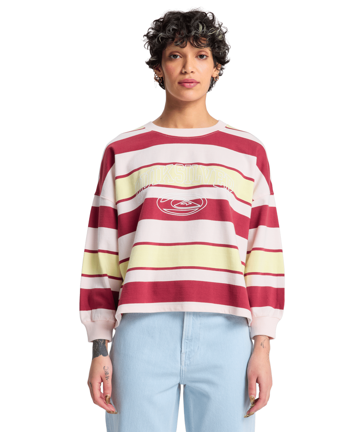 Quiksilver Womens Bright Fleece Crew Neck Burnt Stripe