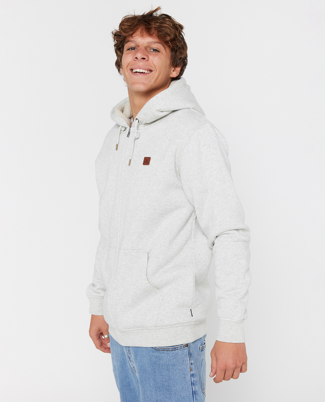 De Rip Curl Icons Lined Zip Thru Hood Light Grey Marl is een premium hoodie met een zachte fleecevoering die maximale warmte en comfort biedt.