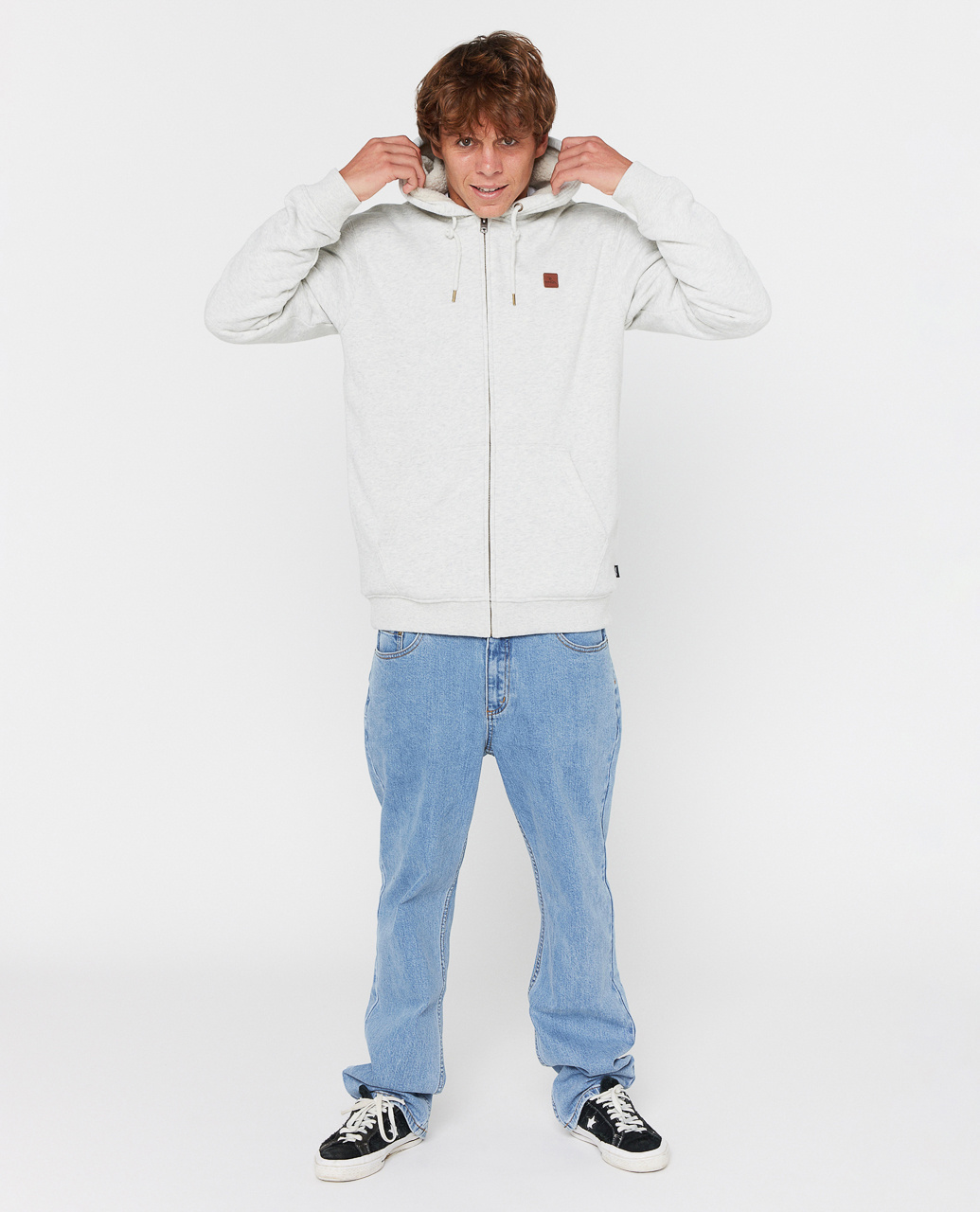 Rip Curl Icons Lined Zip Thru Hood Light Grey Marl