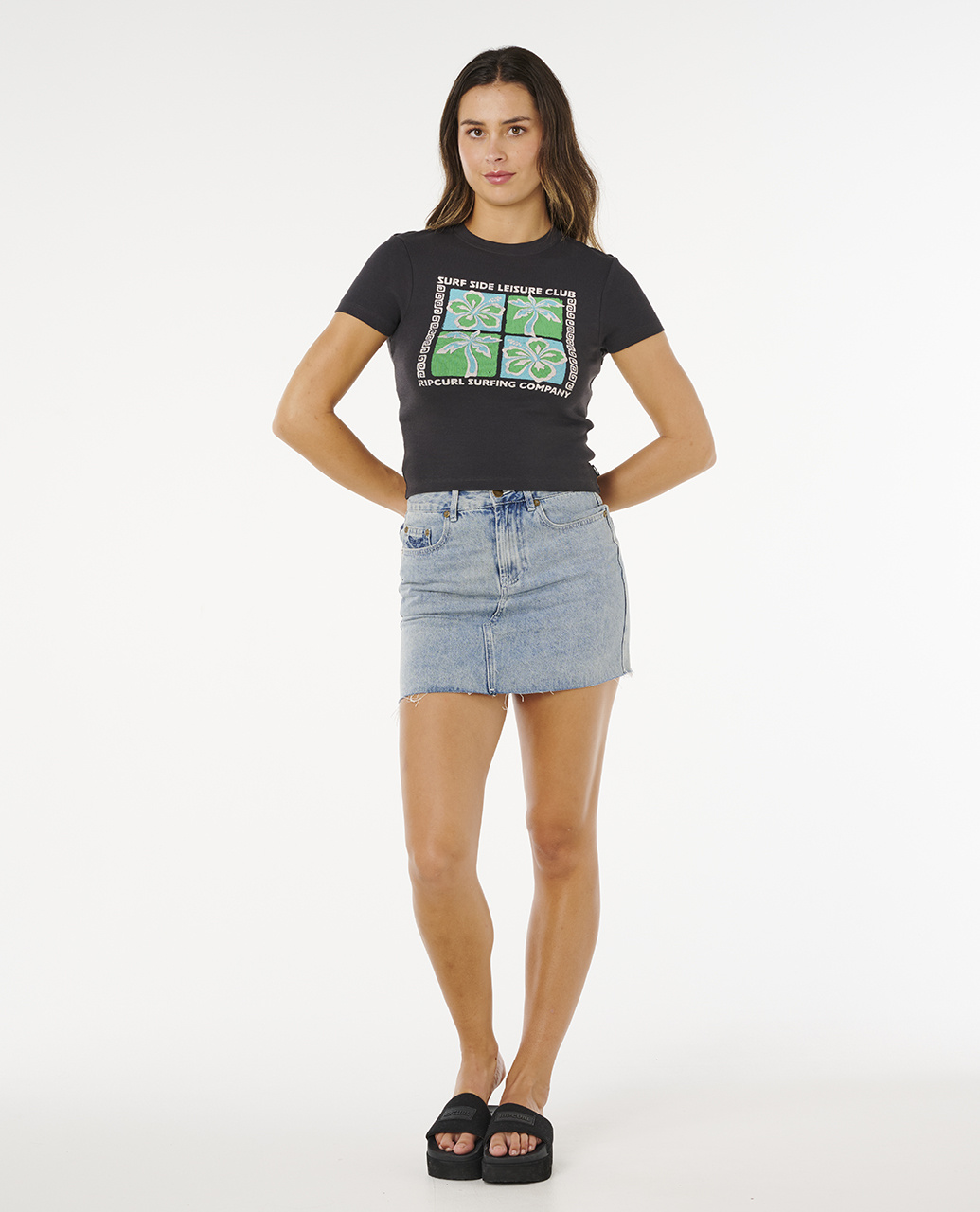 Het Rip Curl Surf Side Fitted T-shirt Washed Black is een dames T-shirt met aansluitende pasvorm en zachte stof. De washed black kleur geeft een casual, vintage uitstraling die perfect past bij stranddagen of dagelijkse outfits.